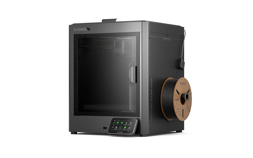 Elegoo Centauri Carbon — бюджетный 3D-принтер с кинематикой CoreXY и модифицированной прошивкой Klipper, обеспечивающей высокие скорости перемещения головки за счет алгоритмов активного гашения вибраций (Input Shaping). Подогреваемый столик, закрытая камера, редукторный экструдер с прогревом до 320°С и износостойкое сопло из закаленной стали позволяют работать с разнообразными инженерными термопластами и армированными композитами, за исключением наиболее тугоплавких. Калибровка выполняется автоматически с построением карты высот по сто двадцать одной точке. 3D-принтер оснащен вебкамерой для записи процессов построения и удаленного наблюдения, а также 4,3-дюймовым сенсорным дисплеем, USB-портом и модулем беспроводной связи (Wi-Fi).