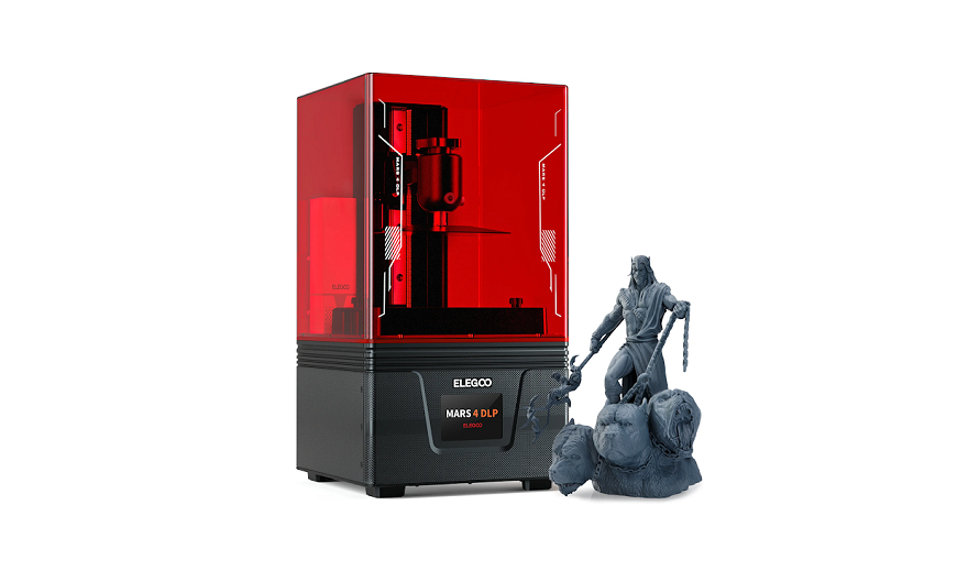 Elegoo Mars 4 DLP — переоборудованный вариант 3D-принтера Mars 4, оснащенный оптической системой на основе цифрового светодиодного проектора вместо жидкокристаллической маски. Проектор производства Texas Instruments отличается высокой продолжительностью эксплуатации — свыше двадцати тысяч часов против порядка двух тысяч у жидкокристаллических матриц. Равномерность засветки достигает 95%. 3D-принтер предназначен для работы с фотополимерными смолами, оптимизированными для засветки ультрафиолетом с длиной волны 405 нм. Для подготовки цифровых моделей к 3D-печати предлагается программное обеспечение Voxeldance Tango с возможностью использования альтернативных слайсеров.