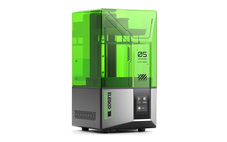 Elegoo Mars 5 — бюджетный настольный 3D-принтер по технологии ЖК-масочной стереолитографии, оснащенный матрицей с разрешением 4K. Аппарат оснащен системой автоматической диагностики ключевых компонентов и защитой светодиодных излучателей от перегрева, прерывающей 3D-печать при температурах свыше 80°С. Модуль подсветки выполнен по технологии «чип-на-плате» в комбинации с линзой Френеля. Калибровка выполняется автоматически. Система очистки воздуха предлагается опционально. Оборудование заточено под фотополимерные смолы, отверждаемые ультрафиолетовым излучением с длиной волны 405 нм. Штатным программным обеспечением для подготовки цифровых моделей к 3D-печати служит Voxeldance Tango с возможностью использования альтернативных слайсеров.