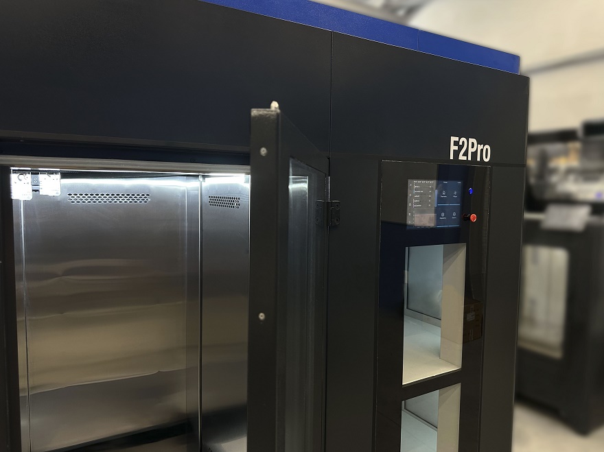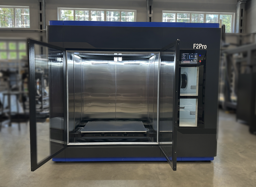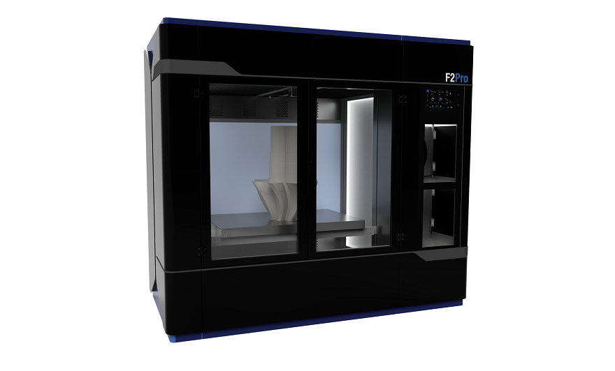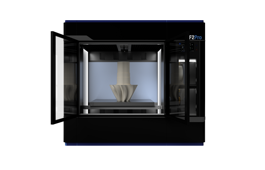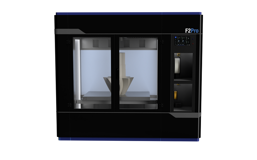 F2 Pro — промышленный 3D-принтер для печати крупногабаритных изделий с областью построения размером 1000х600х1000 мм. Система оборудована двумя высокотемпературными экструдерами с температурой хотэндов до 550°С, позволяющими работать даже с такими тугоплавкими конструкционными термопластами, как PEEK, PEKK и Ultem. Нагрев экструдеров до рабочей температуры занимает три-десять секунд, точность поддержания температуры расплава составляет 3°С. Предусмотрена система быстрой смены хотэндов с износостойкими соплами разного диаметра из нержавеющей стали или сапфирового стекла. Расходные материалы хранятся в сухом отсеке, рассчитанном на две катушки филамента массой до 5 кг. Вариант Pro Pellet оснащается одним шнековым экструдером и подогреваемым бункером с пневматической подачей для работы с гранулированными материалами.