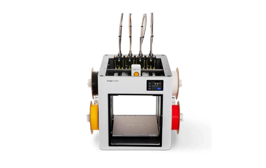 Snapmaker U1 — настольный 3D-принтер с тулченджером SnapSwap (системой автоматической смены инструмента) на четыре головки. Смена головок экструдеров занимает около пяти секунд, калибровка по высоте и юстировка столика выполняются автоматически. Возможность быстрого переключения с одной головки на другую означает отсутствие необходимости в прочистке хотэндов и построении «мусорных» башенок, что выливается в значительную экономию времени и материалов в сравнении с системами автоматической смены филаментов. Кинематика CoreXY и прошивка с алгоритмами активного гашения вибраций (Input Shaping) и динамического контроля подачи расплава (Pressure Advance) позволяют развивать скорости позиционирования до 500 мм/с с ускорениями до 20 м/с^2. Хотэнды прогреваются до 300°С, каждая из головок может быть настроена на работу в своем температурном режиме. Режим резервирования дает возможность автоматического переключения с пустой катушки на полную для полной выработки расходного материала. При использовании фирменных катушек система способна самостоятельно распознавать тип филаментов и выбирать оптимальные параметры 3D-печати.