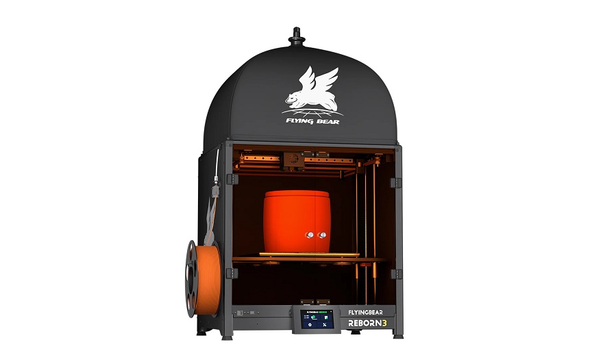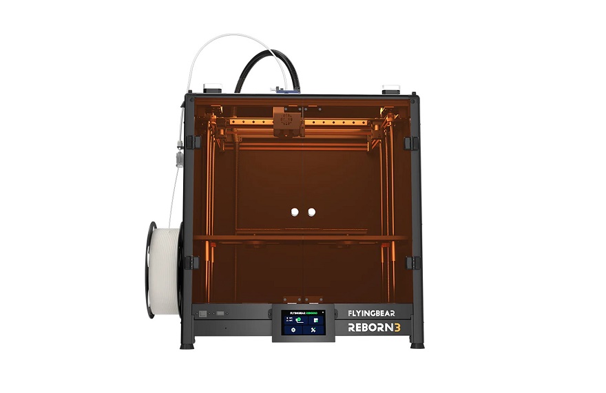 Flying Bear Reborn 3 — продолжение линейки Reborn с усовершенствованиями, направленными на повышение производительности. 3D-принтер полагается на кинематику CoreXY и прошивку Klipper с алгоритмами активного гашения вибраций (Input Shaping), обеспечивающими скорости позиционирования до 500 мм/с с ускорениями до 20 м/с^2. Экструдер оснащен редукторным механизмом подачи и развивает температуры до 300С, позволяя работать с наиболее популярными полимерами и композитами. В комплекте с 3D-принтеров поставляется съемный колпак, помогающий стабилизировать температуру в рабочей камере для борьбы с усадкой печатаемых изделий. Подача материала отслеживается датчиком филамента, на случаи перебоев с электропитанием предусмотрена функция запоминания и возобновления печати. Бортовой интерфейс включает 4,3-дюймовый сенсорный дисплей, передача данных осуществляется по USB, Wi-Fi и Ethernet.