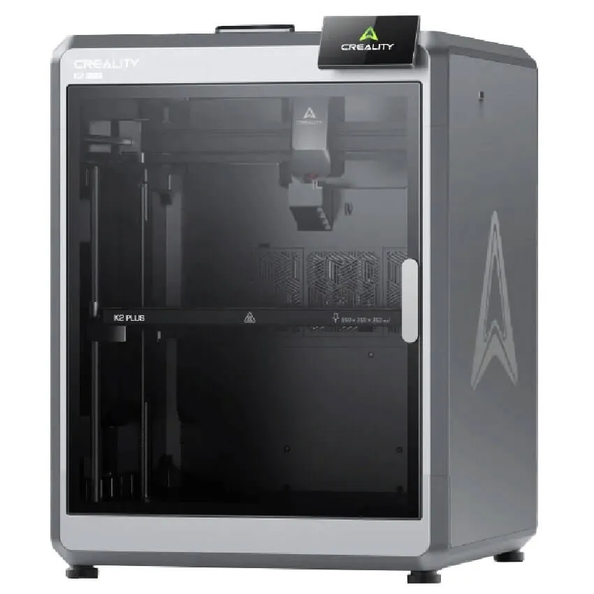 Creality K2 Plus — это высокоскоростной FDM/FFF 3D-принтер с закрытым корпусом, рабочей областью 350x350x350 мм, максимальной температурой экструдера 350°C и стола 120°C. Он отличается скоростью печати до 600 мм/с, поддержкой инженерных материалов благодаря высокой температуре экструдера и камеры, а также автоматическими системами, такими как автокалибровка и регулировка натяжения ремней. Принтер оснащен 4,3-дюймовым сенсорным дисплеем, Wi-Fi, Ethernet, внутренней памятью 32 ГБ и встроенными AI-камерами для контроля печати и потока.