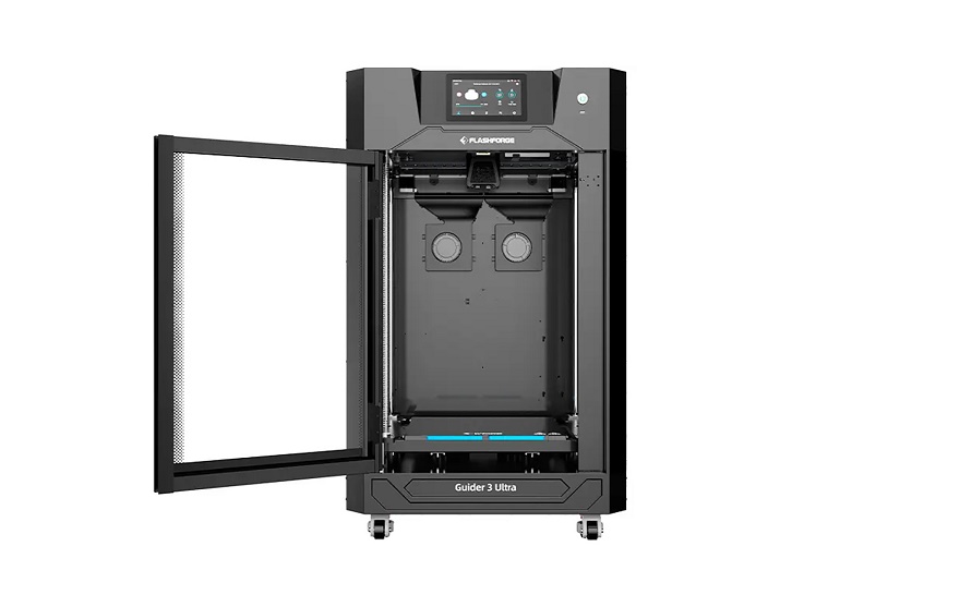 Flashforge Guider 3 Ultra — двухэкструдерный вариант FDM 3D-принтера Guider 3 Plus, оптимизированный под 3D-печать деталей сложной геометрической формы за счет одновременного использования основных и опорных материалов. Область построения достигает 350х350х600 мм и позволяет выращивать довольно крупные изделия. Система построена на кинематике CoreXY с двойным шарико-винтовой приводом по оси Z. Рабочий объем полностью закрыт для термостабилизации, расходные материалы хранятся в герметичных сухих отсеках с силикагелем и датчиками температуры и влажности. Хотэнд с повышенной до 350°С максимальной температурой позволяет работать с большинством полимеров и композиционных материалов с волоконным армированием, включая некоторые тугоплавкие конструкционные термопласты.