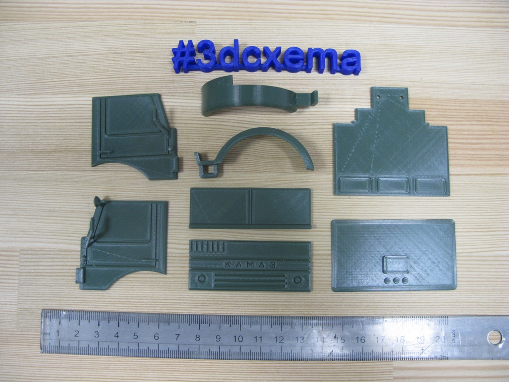 Ну вот поехали первые деталькиКабину пришлось печатать соплом 0,25 так как очень много тонкостей.Параллельно моделированию и печати приступили к сборке, хотя был риск что размеры не совпадут и придется переделывать, но сроки.....Но самая задница была впереди - это антенна.