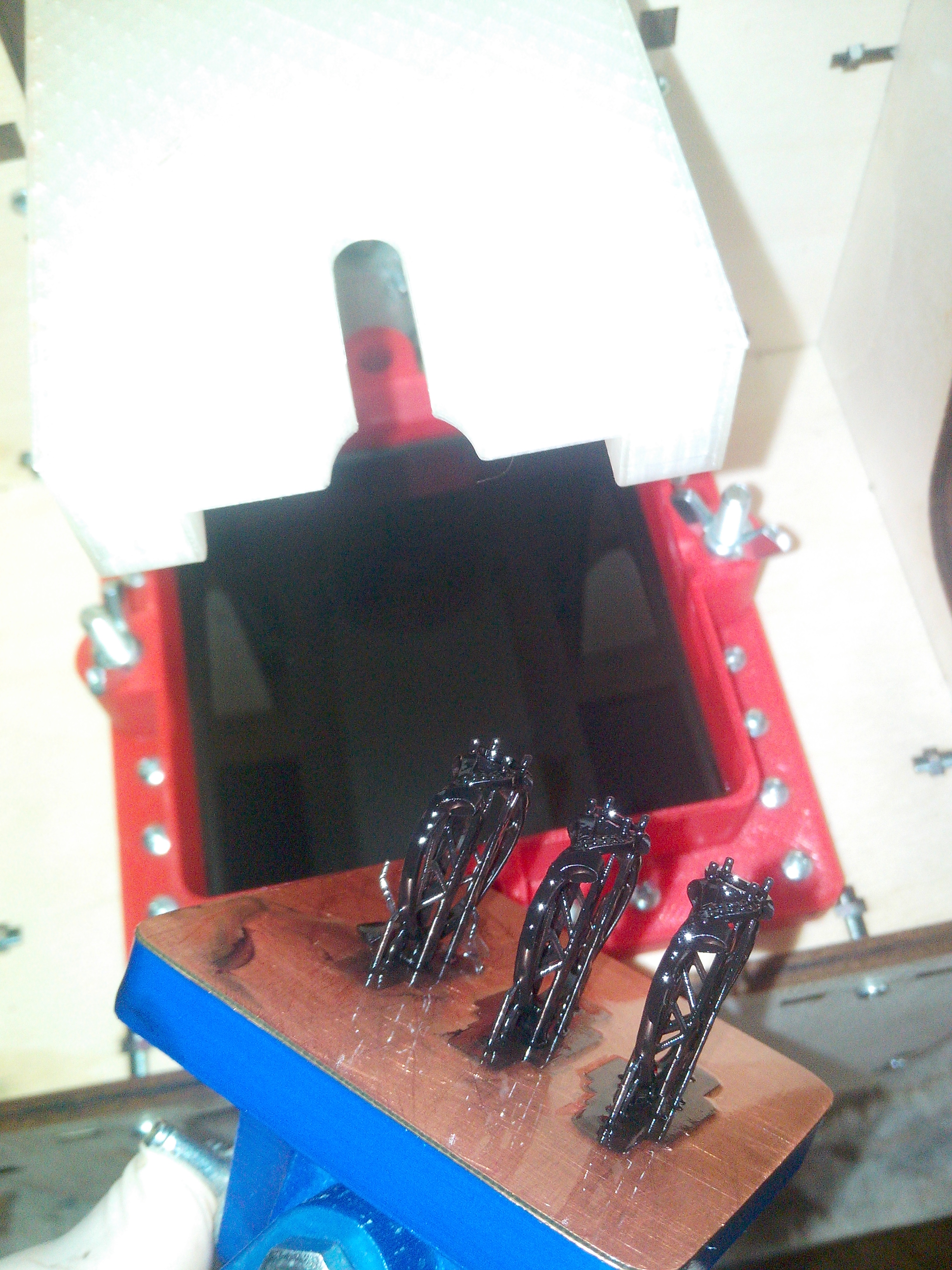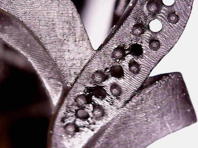 Модель:На D7 отверстия заплыли (остались только ямки):На JAP J отверстия пропечатались отлично:На Projet конечно тоже:Я бы сказал, что на JAP J отверстия получились даже четче, с другой стороны более заметны слои и крапаны получились какие-то более сглаженные. Возможно, надо было отключить antialiasing. Во всяком случае, использование маленькой квадратной матрицы высокого разрешения, правильной оптики и светодиода с более короткой волной ставит JAP J гораздо ближе к Projet, чем к D7 по качеству. А вот по цене он гораздо ближе к D7.
