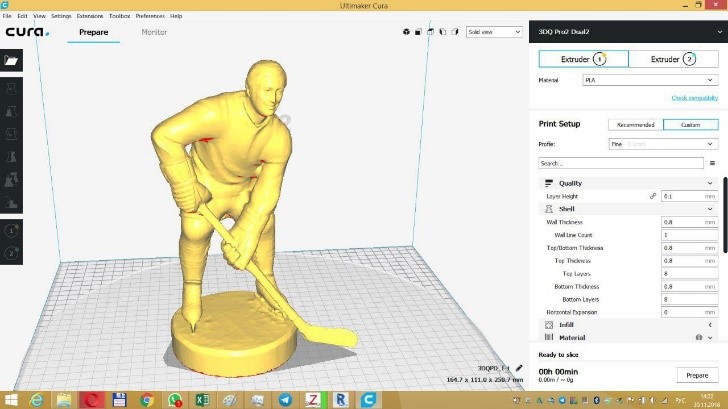 Еще один немаловажный нюанс, т.к. времени на сканирование и дальнейшую обработку шахматных фигур у нас практически не было, нашему заказчику надо было презентовать данные шахматы на Дне Рождения, мы быстро отсканировали все объекты, включая «лишние элементы», которые захватывались в момент сканирования, а уже затем, в спокойной обстановке, сканировали заново (уже без использования сенсора) и обрабатывали каждую модель по отдельности, благодаря функции ПО Planeta3D – «сохранение последовательности». Далее полученные STL файлы мы подготавливали под 3D печать в слайсере Cura.