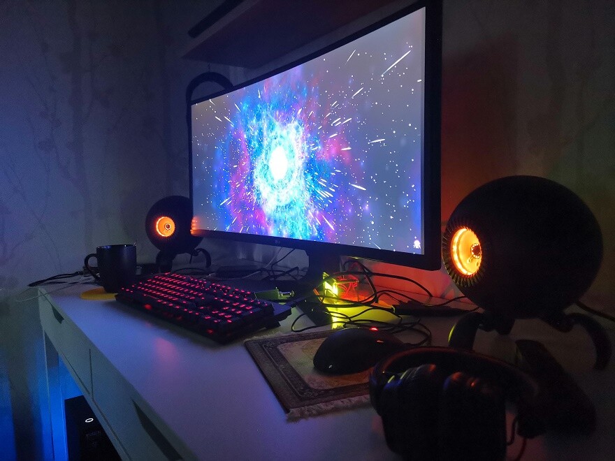 «Моя гордость — проект акустической системы. Это не просто колонки, у них есть свой усилитель, Bluetooth-адаптер на чипе Qualcomm с поддержкой APTX-HD. Почему гордость? Он полностью самостоятельный в плане моделирования, 3D-печати, расчетов. Подбор и компоновка электроники тоже мои. Из заимствованного — код RGB-подсветки. История проекта такова: наткнулся на колонки Gravastar серии Mars. Это такие шарообразные роботы на ногах, выглядят брутально и фантастически. Мне не понравилась цена, отзывы о качестве звучания и то, что колонки сделаны как портативные, то есть работают от аккумуляторов с подключением преимущественно по Bluetooth. Мне кажется, мало кто будет активно переносить колонку за двадцать пять с лишним тысяч из коллекционной серии при том, что она немаленькая, нелегкая и ее жалко повредить. Поэтому начал изучать вопрос.