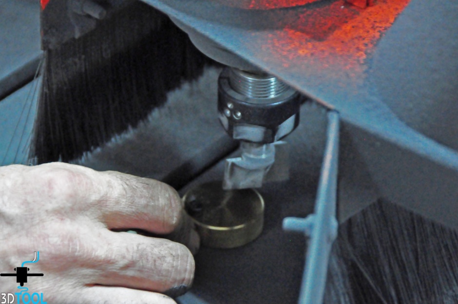 В данном случае устанавливали станок с Т-слотами. Который имеет имеет “жертвенный” стол из мягкого материала. Перед началом работы его нужно выровнять. Для этого имеется специальная программа, по которой фреза проходит по всей площади стола и делает идеальную поверхность для начала работы: