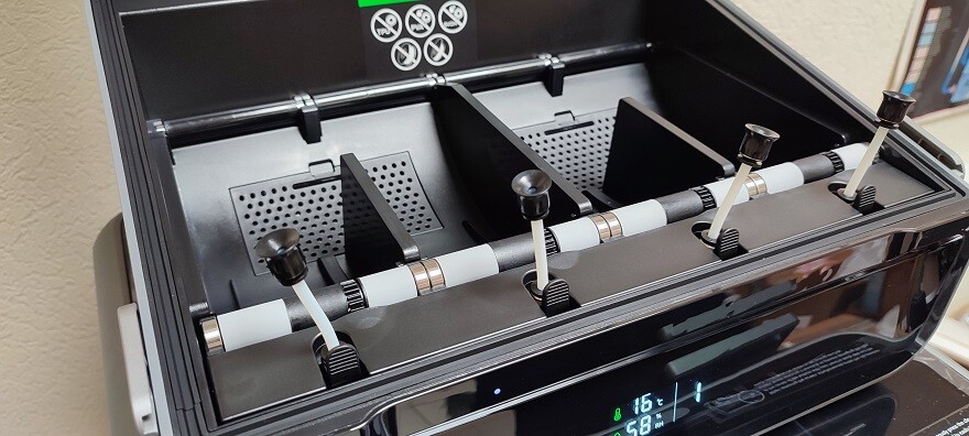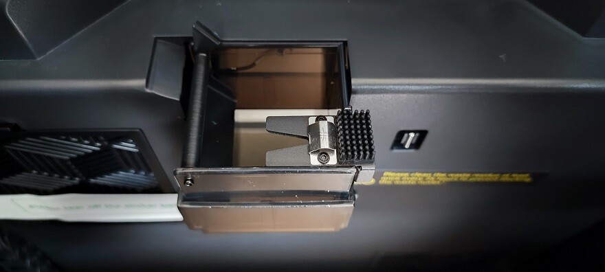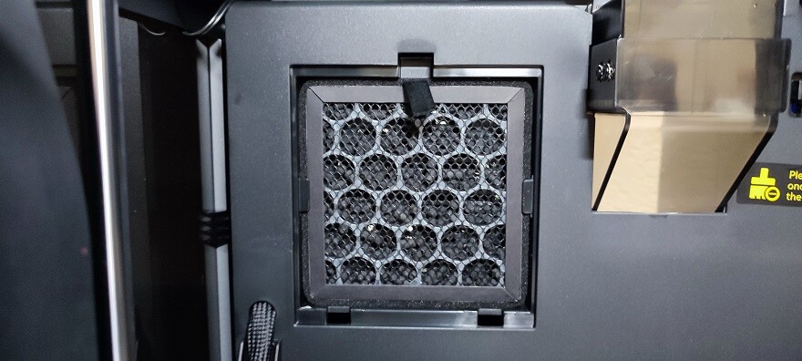С внутренней стороны задней панели расположены отсек угольного фильтра, система очистки сопла и датчик фоновой температуры.