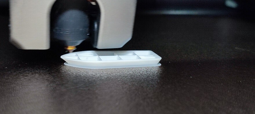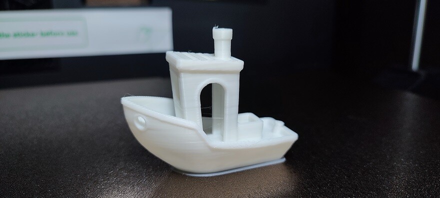 3D-принтер работает достаточно тихо благодаря качественным современным шаговым серводвигателям и динамической регулировке оборотов вентиляторов. Кораблик печатается всего за шестнадцать минут без нареканий.