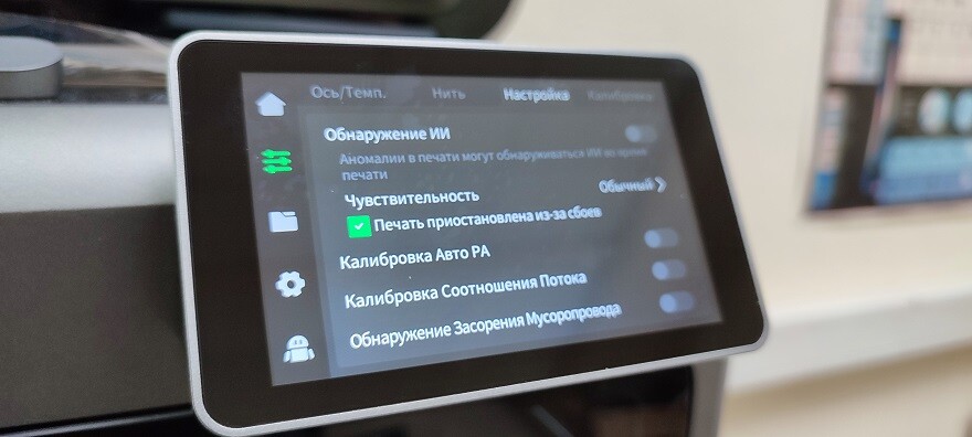 Во время 3D-печати в онлайн-режиме можно контролировать процесс и, при необходимости, корректировать некоторые настройки.