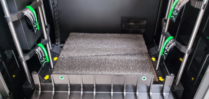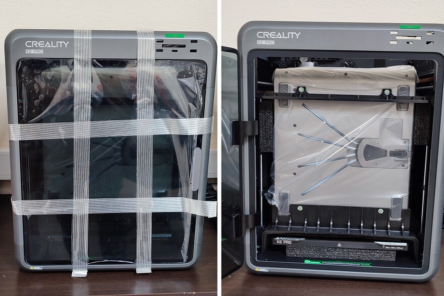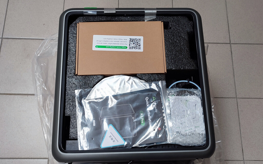 3D-принтер поставляется в плотной коробке из многослойного картона с дополнительными ребрами жесткости и амортизирующими изолоновыми вкладками. Почти все отдельные комплектующие, включая систему CFS, на время транспортировки размещаются внутри принтера, а верхняя стеклянная крышка упаковывается в плотный картонный карман и крепится сбоку.