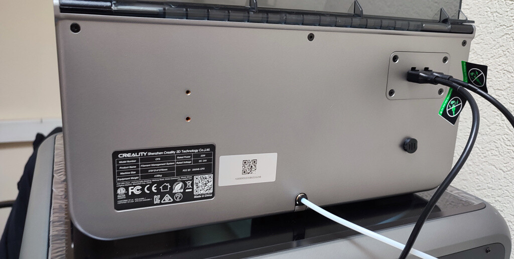 Система автоматической смены филамента CSF (Сreality Filament System) представляет собой устройство, позволяющее в автоматическом режиме управлять загрузкой и выгрузкой филаментов и поддерживающее одновременную установку до четырех катушек пластика. Устройство оснащено датчиками температуры, влажности и распознавания RFID-меток, позволяющих автоматически определять тип филамента на фирменных катушках от Creality. По периметру соединения крышки с корпусом CFS оснащена уплотнителем, внутри располагаются отсеки для размещения силикагелевых поглотителей влаги, помогающих держать филаменты сухими. В настоящее время системы CFS не снабжаются нагревательными элементами для просушивания филаментов и потому не требуют отдельных блоков питания, получая энергию напрямую от 3D-принтера.