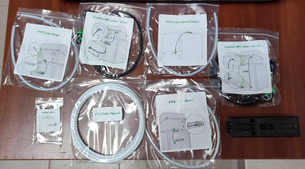 Сборка и подключение системы CFS не представляет особой сложности. Все PTFE-трубки и коннекторы упакованы в пакетики с наклеенными инструкциями по установке. Буфер прикручивается к корпусу двумя винтами и имеет два разъема: первый — для подключения основной CFS, второй — для дополнительной CFS или внешней катушки филамента.