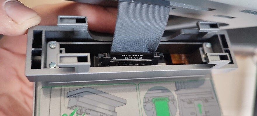 Для установки дисплея протаскиваем шлейф через прорезь в корпусе, соединяем шлейф с коннектором на плате экрана и крепим в пазах на корпусе движением справа налево.