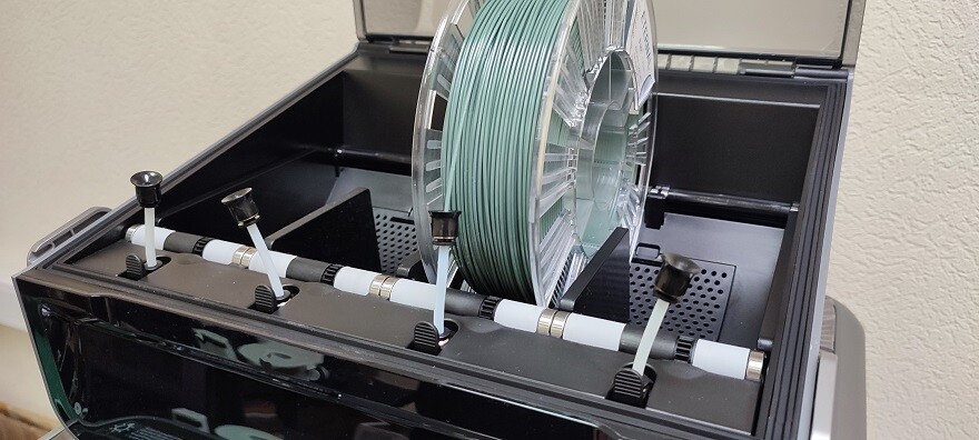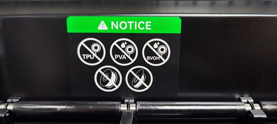 В CFS не рекомендуется устанавливать гибкие и водорастворимые филаменты вроде термопластичного полиуретана (TPU) или поливинилового спирта (PVA). Если все же планируется 3D-печать водорастворимыми филаментами, материалы необходимо предварительно просушивать во избежание загрязнения системы. Также возможны проблемы при работе с нестандартными и деформированными катушками, особенно картонными.