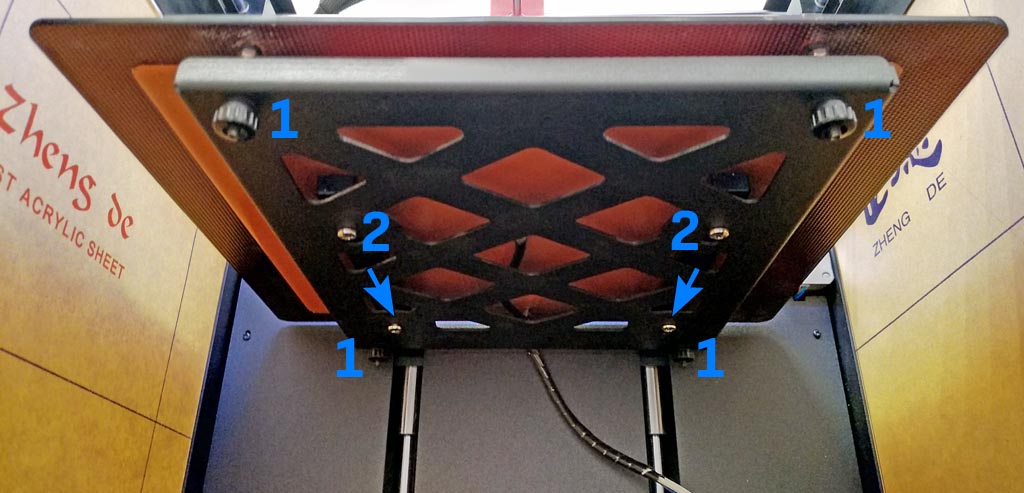 Крепится стол путем «въезжания» на кронштейны (2). При этом он не теряет своей калибровки, т.к. калибровочные винты (1) расположены на самой консоли и снимаются вместе с ней не меняя положения.