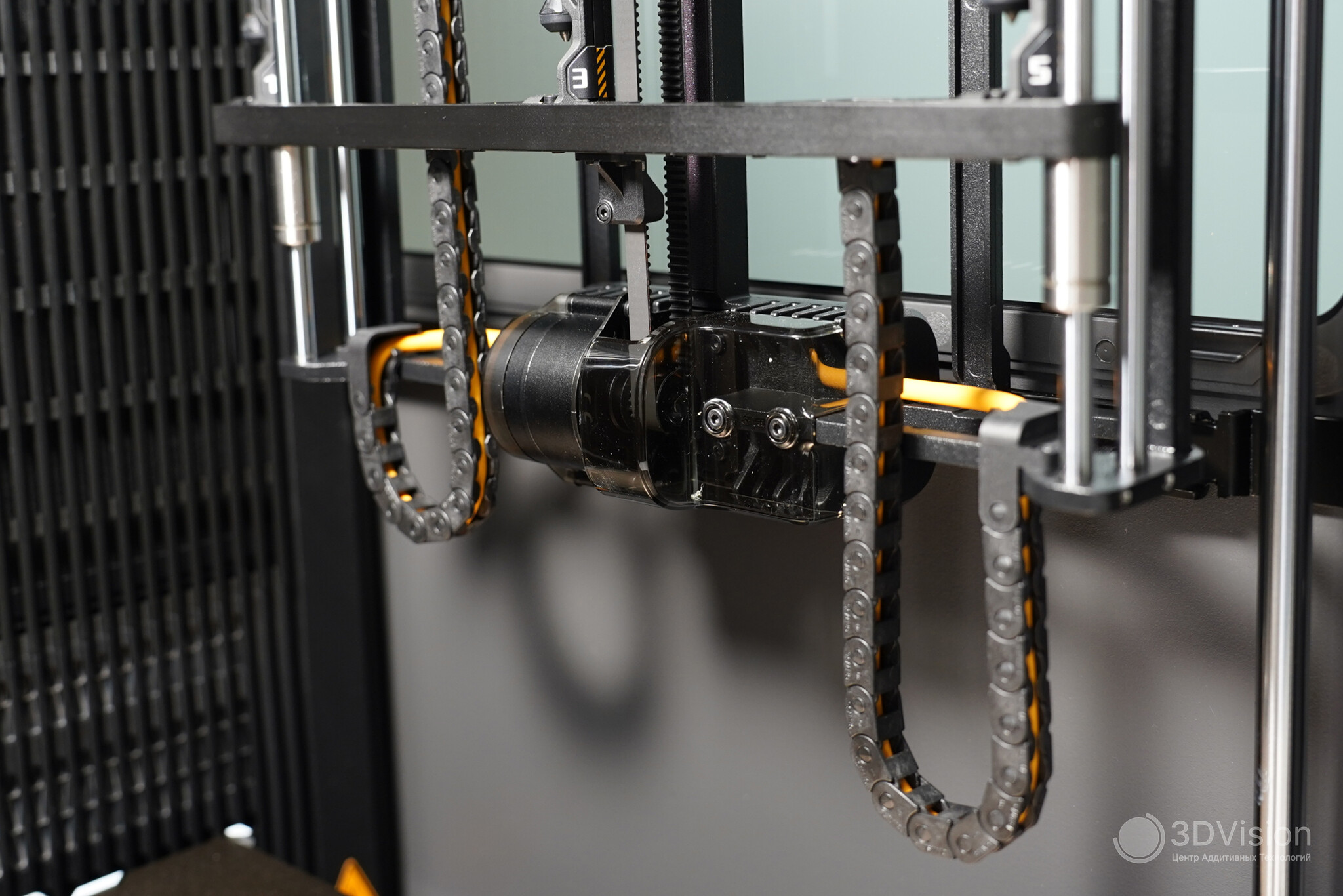 Каков его принцип работы? Это принтер с двумя экструдерами, оснащённый активной термокамерой и модулем для быстрой смены хотендов Vortek. Благодаря модулю многоцветная печать ускоряется, при этом минимизируется количество отходов при смене филамента.