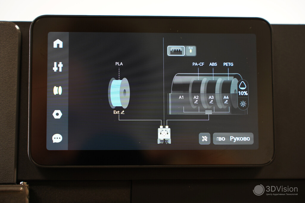 Далее, вкладка «филамент», где происходит менеджмент материалов и управление их сушкой в AMS. Последняя поставляется без блока питания, и питается от принтера поэтому сушить филаменты можно только во время простоя. Разъём для питания присутствует, и для сушки филамента в любое время вам нужен БП на 24 В, 4 А.