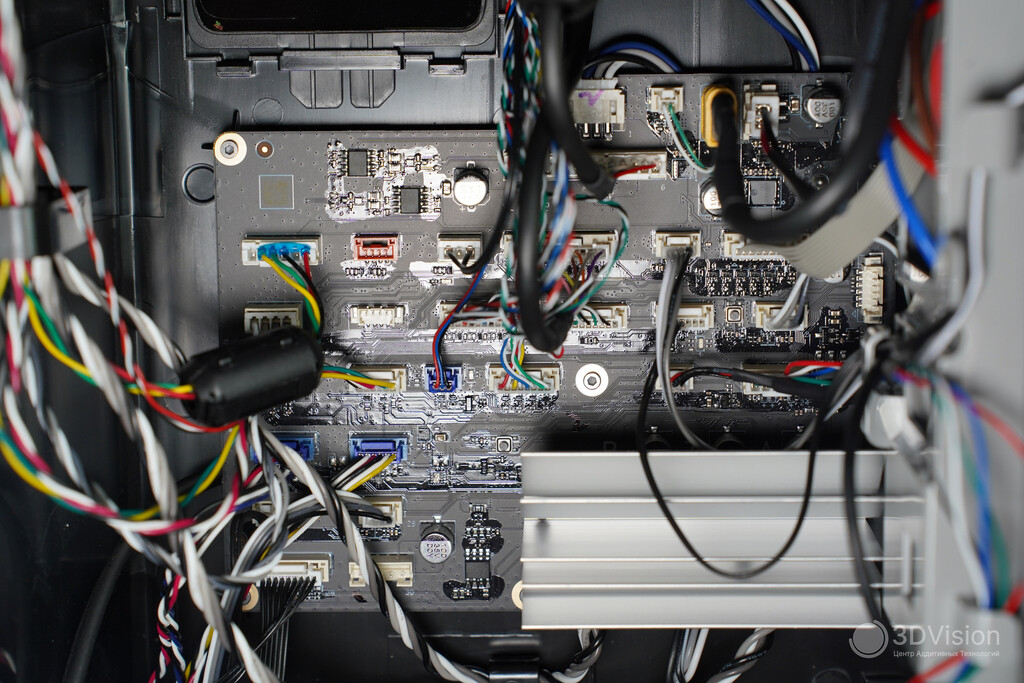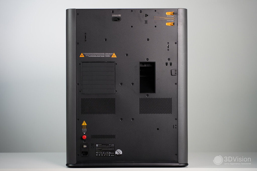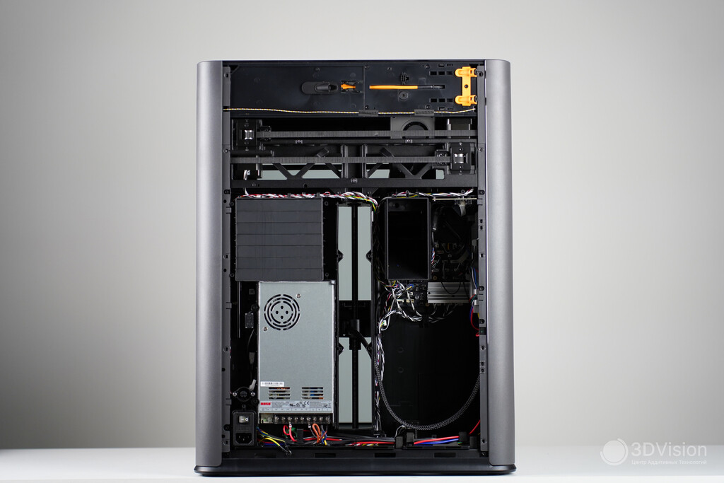 Термокамера способна нагреваться до 65 °C. Её внутренние компоненты изготовлены из негорючих материалов, что исключает риск возгорания. Нагрев до 65 °C занимает около 20 минут, поэтому при работе с инженерными пластиками рекомендуем заранее прогревать принтер.