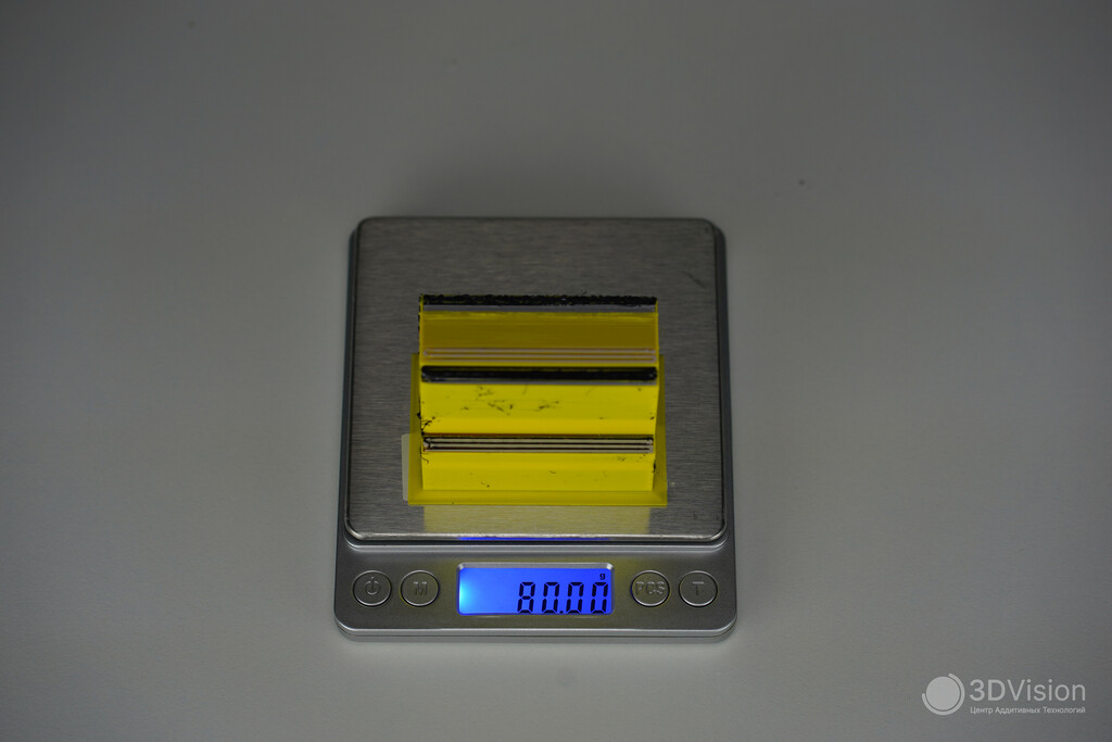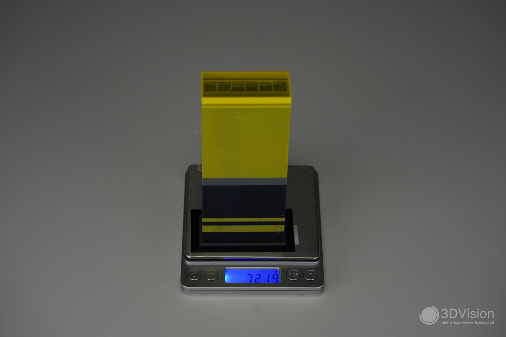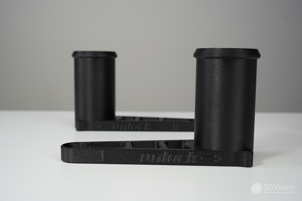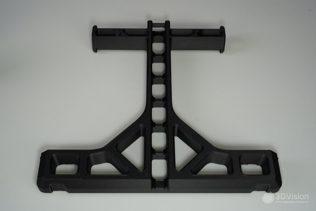 Результаты прекрасные Благодаря активной термокамере удалось без проблем напечатать крупную деталь из композитного полиамида. От стола ничего не оторвало, углы не загибались.