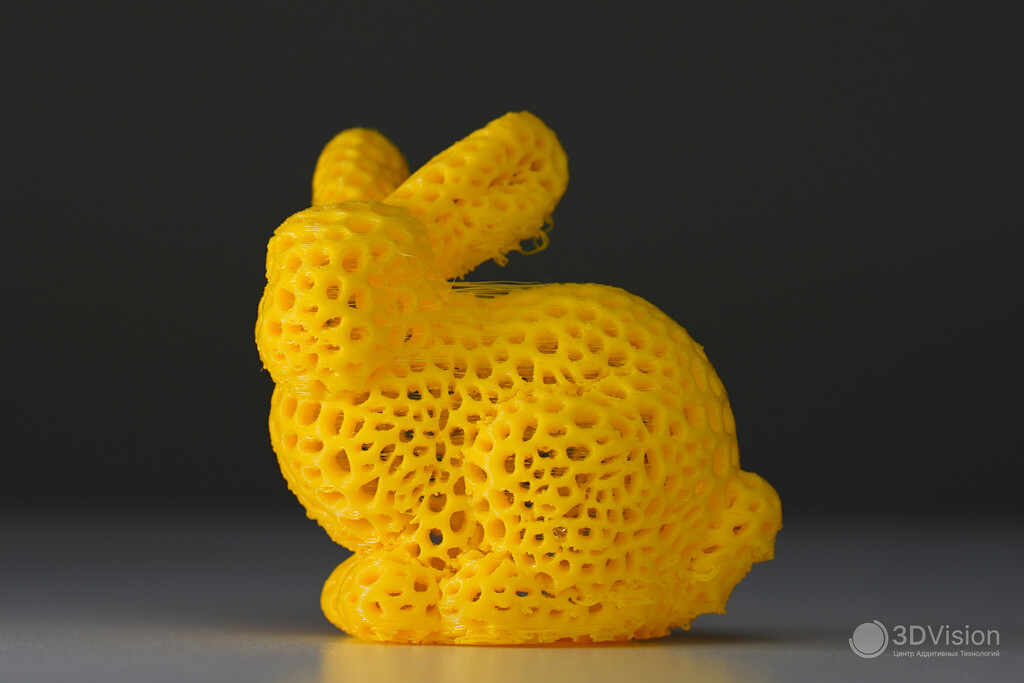 Первым напечатали Стенфордского кролика с паттерном вороного в качестве полноценного стресс — теста с большим количеством ретрактов.