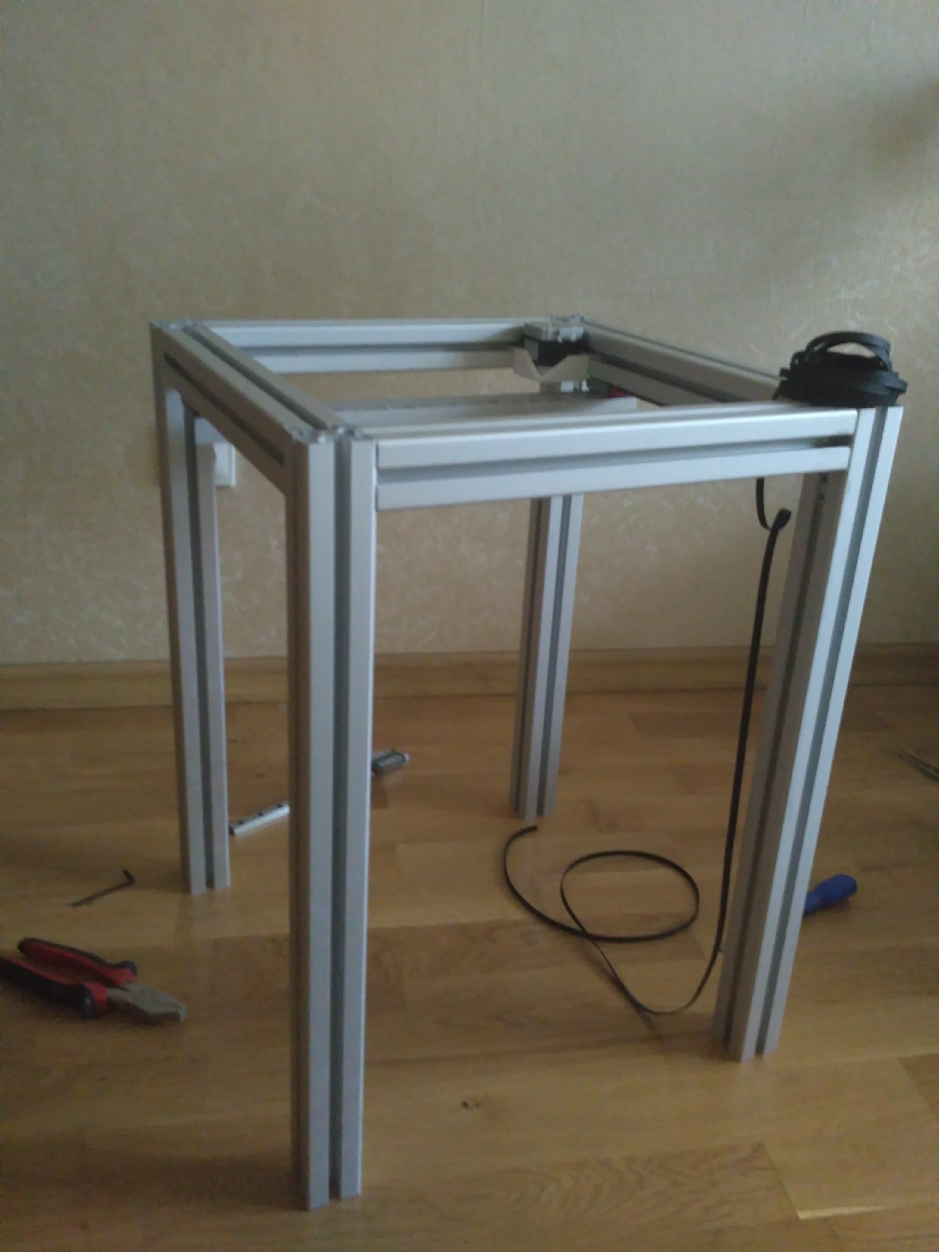 Корпус на станке с выбранной кинематикой должен быть максимально жесткий. Для первой самоделки я выбрал конструкционный алюминиевый профиль, чтобы в случае чего можно было легче разобрать/собрать, добавить какие-либо детали - очень подкупает паз, в который можно вставить что угодно.