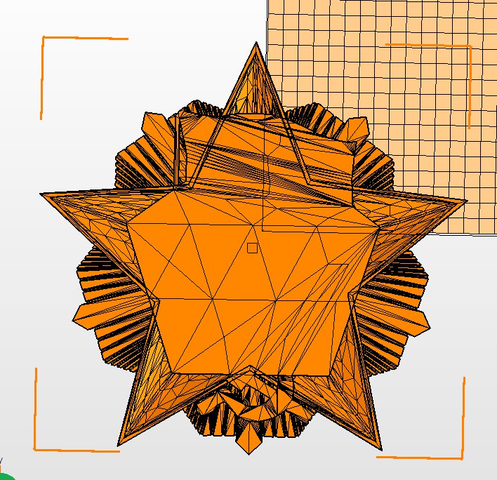 Тут все просто, с учетом того, что созданием 3d модели занимался наш моделлер – специалист с богатым опытом и золотыми руками. При условии плотной занятости нашего профессионала на работу в 3dMax по созданию двух моделей ему потребовалось чуть больше двух рабочих дней. При этом 3d модели создавались из отдельных элементов (центральные части (на рисунке изображены белым цветом) должны были входить в основания самих орденов, серпы с молотами как автономные республики также печатались отдельно). После создания 3d моделей орденов, для удобства при печати обе модели были разрезаны на несколько частей в Netfabb.3d печать.