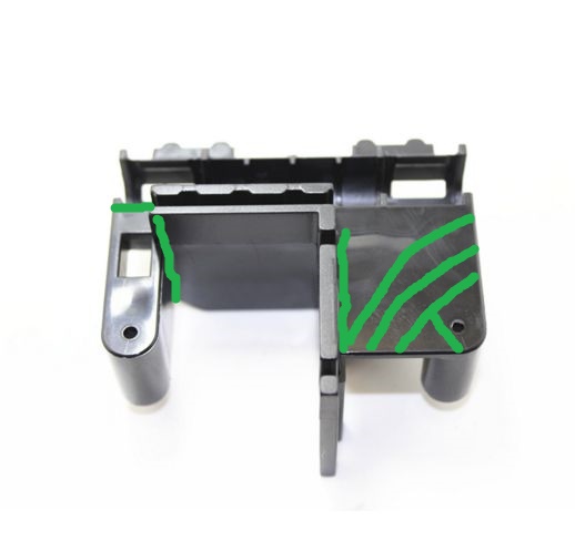Взял пинцетом пруток PLA, что под руку попалось, и опустил в Метилен хлористый, где то через минуту пруток начал напоминать пластилин. Достал и начал накладывать бандаж, прижимая пинцетом и разглаживая, примерно по такой схеме, выделено зеленым.После высыхания, покапал Метиленом хлористым на швы и оставил сушится на сутки. Собрал всю конструкцию и запустил печать. 31 час печати нареканий к узлу нет. Но если у кого есть STL правой каретки оси У был бы благодарен, очень не хочется разбирать принтер чтобы измерить. Фото больного, прошу прощения за качество.Всем Удачи!
