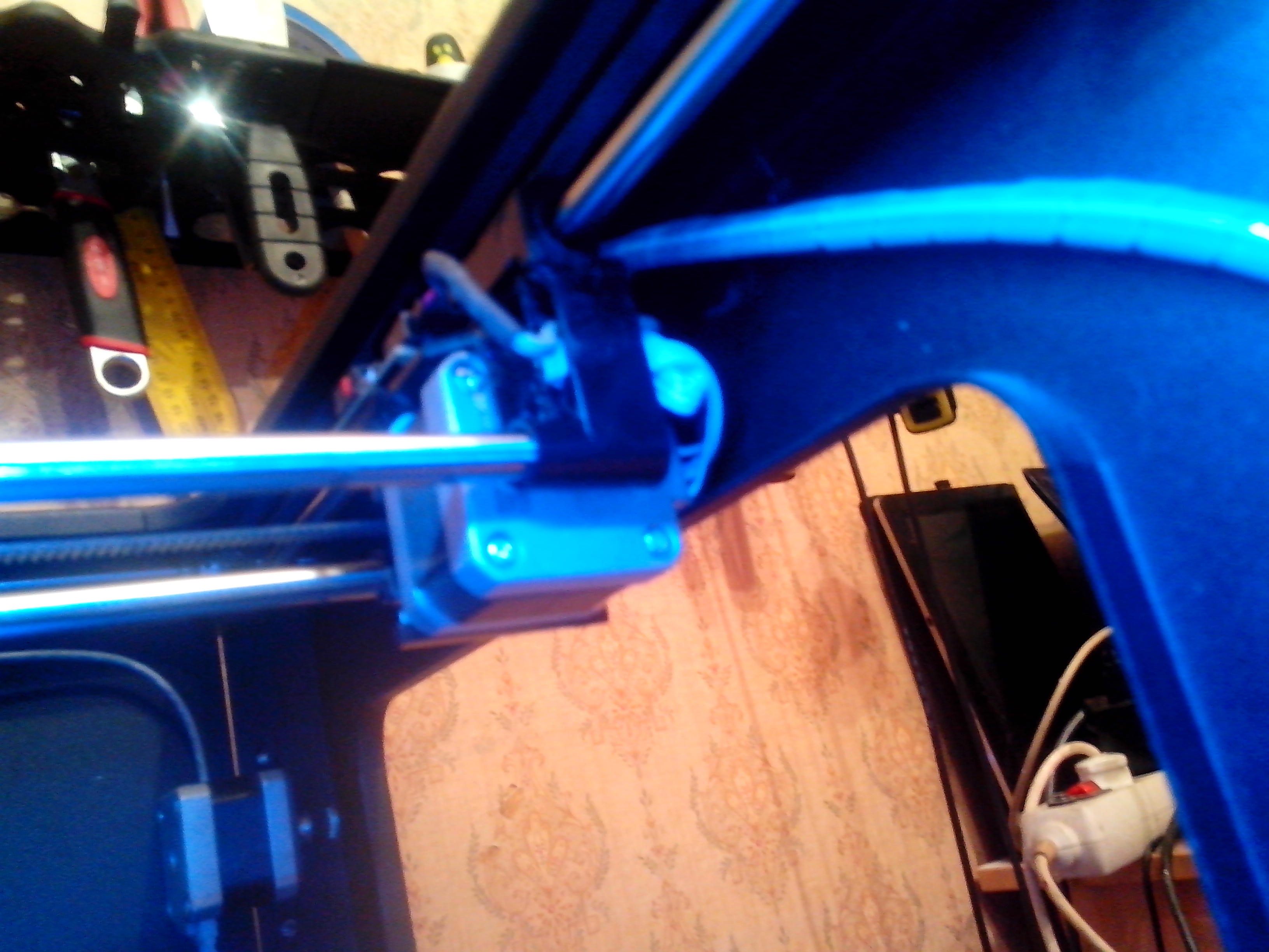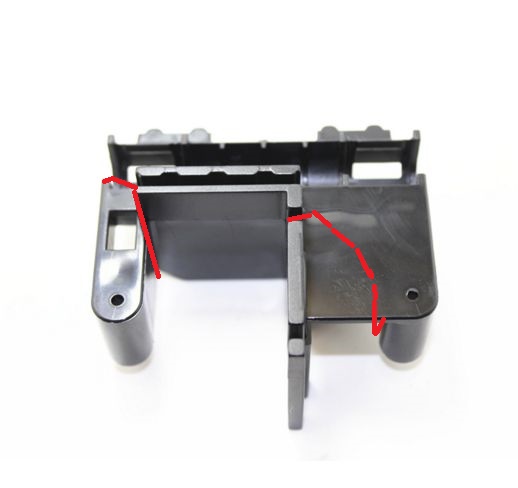 Как всегда неожиданно рассыпалась на три части каретка оси У, отвалился мотор с креплениями, и гнездо одной направляющей, по сколько был в ужасе что светит перерыв в печати, даже не сфотографировал, на схеме место разлома обозначено красным.Напечатать я ее не мог, мотор передвижения по оси У весит только на ремнях, направляющие сами по себе. Ждать с Али минимум месяц. Решил попробовать восстановить.