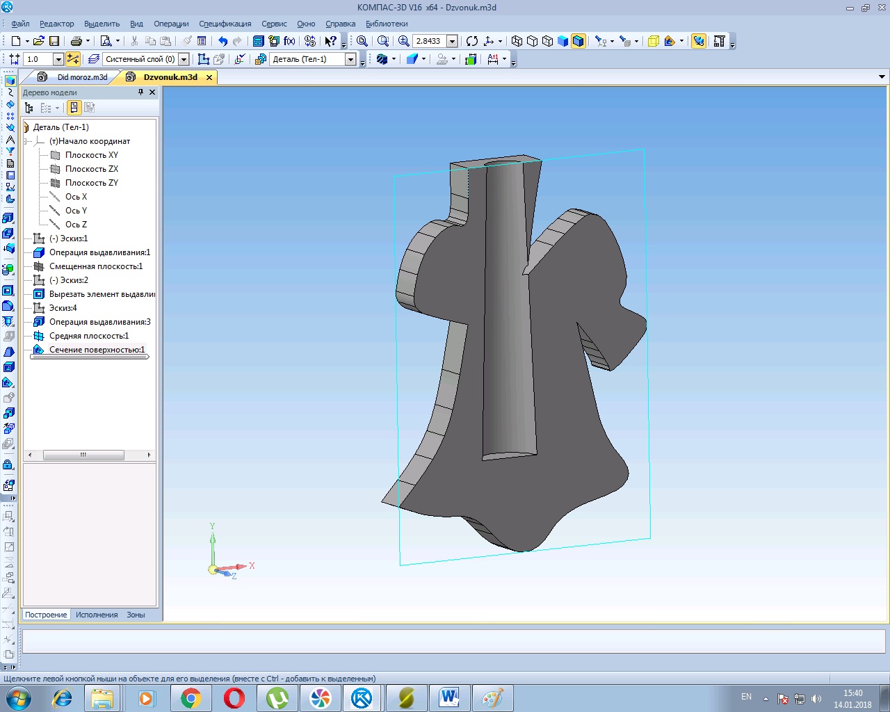 Исходя из результата, захотелось мне сделать что либо объемное. Чтобы особо не заморачиваться решил сделать обычный шар но с прорезанной надписью «2018». Сел за Компас, спустя 10 минут перебора разных шрифтов была готова простенькая моделька вот такого шара.