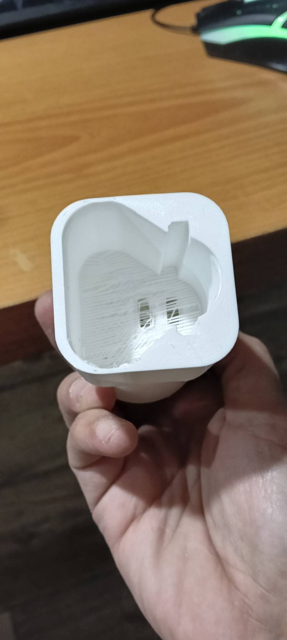 Печатал на Anycubic Mega Zero 2.0 полностью пустым пустым без заполнения. В STL файле предусмотрел тонкую часть основы под клеммы что даёт печатать БЕЗ поддержек.
