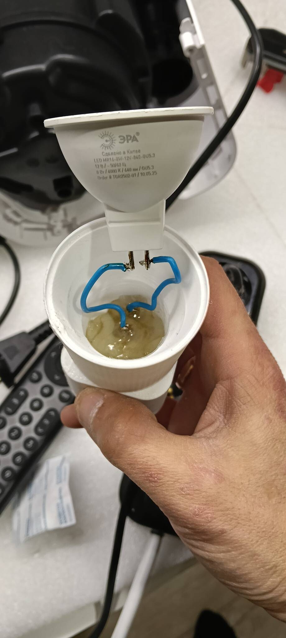 Саму led лампу сажаем в посадочное место, перед установкой тоже покрываем термо клеем по окантовке.