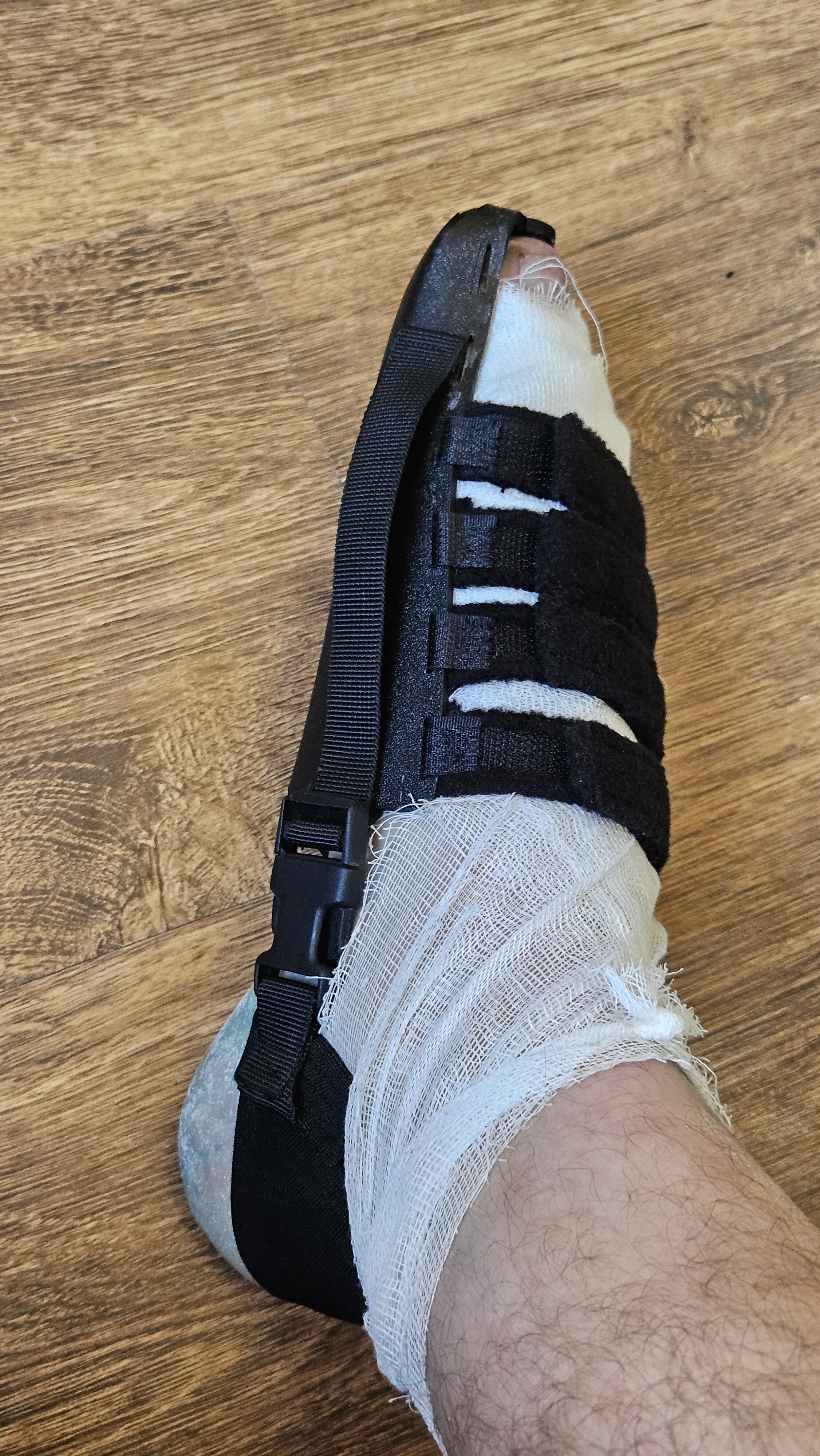 После операции конечность мою заключили в лангету. Для тех, кто не в курсе: формально это «иммобилизация большого пальца», а по факту — блокировка всего голеностопа. Ни согнуть, ни повернуть. Любой, кто носил гипс, знает эту гамму непередаваемых ощущений: тяжесть, жара, невыносимый зуд. А к вечеру, когда нога отекает, бинты начинают работать удавкой.
