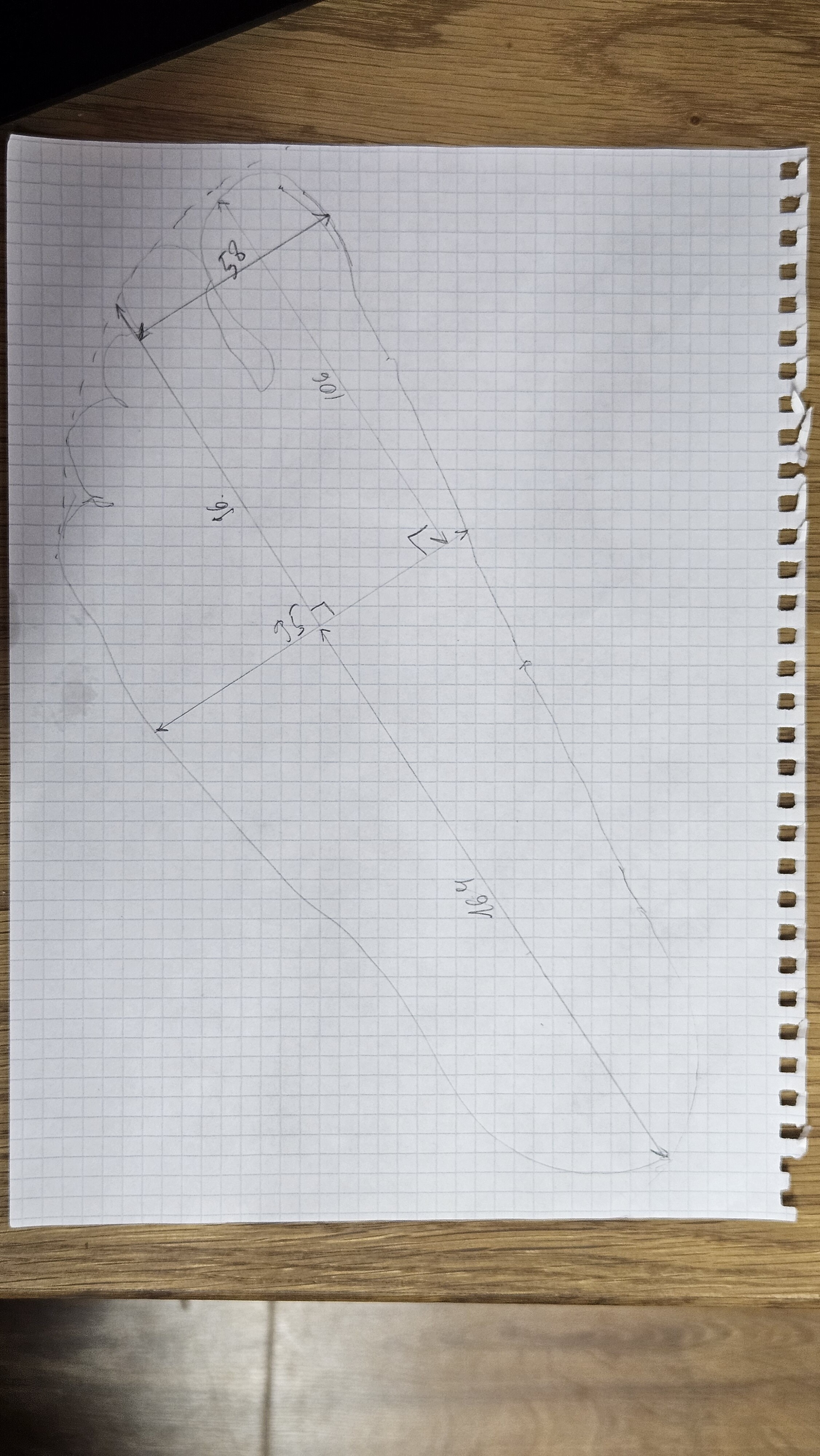 С помощью сына снял эскиз со здоровой ноги, подогнал размеры: длинна, ширина, дуга над пальцами, особое вниамание большому пальцу - он как-никак виновник торжества. Эскиз делали на листе в клеточку для удобного масштабирования.