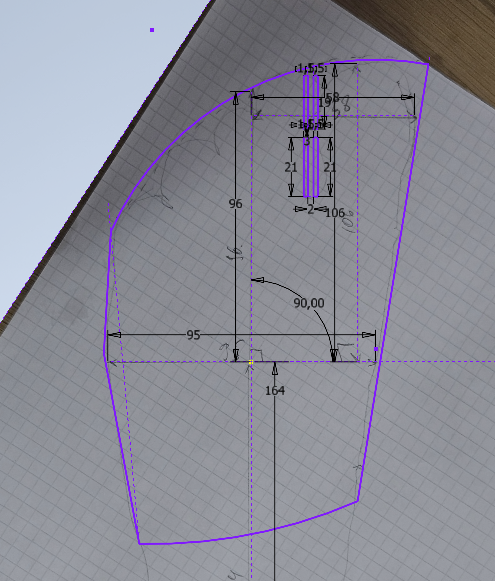 Перенеся эскиз в виртуальный мир первым делом обозначил основную геометрию.