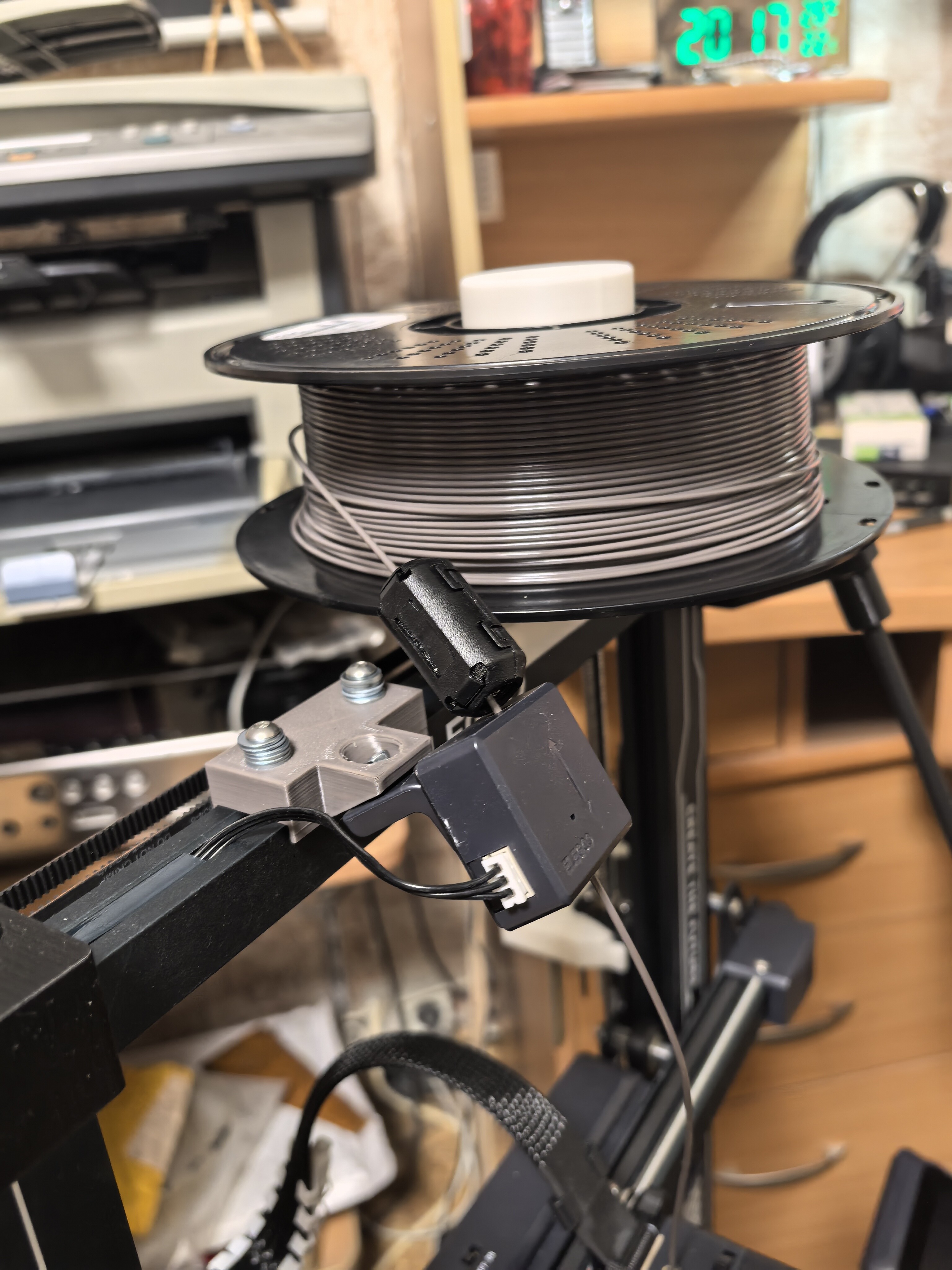 Так как штатный кронштейн уехал, для крепления датчика напечатал еще один небольшой швеллер с выступом под крепление датчика. Сохранил такой же свободно качающийся подвес датчика. ТО, что получилось - на фотографиях.