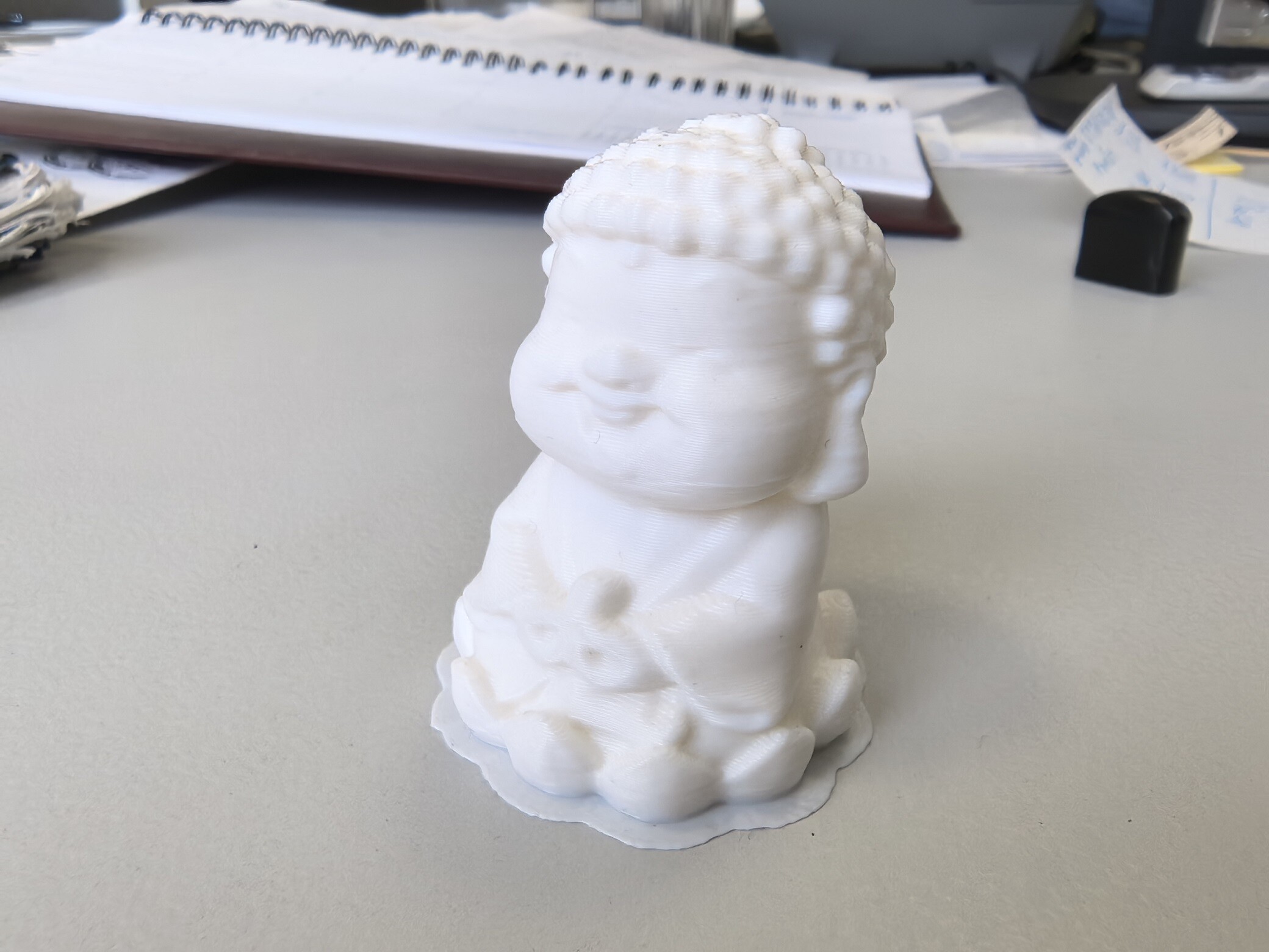 Второй подход решил делать в щадящем режиме. Взял моток PLA из комплекта поставки, модель Будды оттуда же и - все вышло, как доктор прописал!