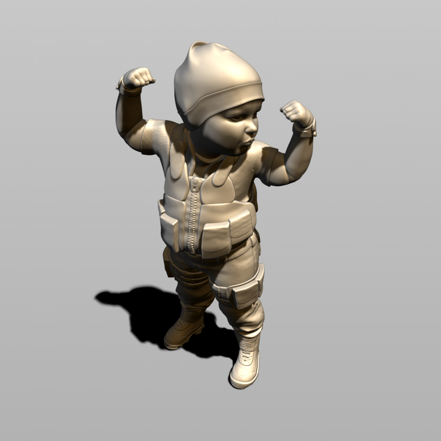 Так что этот бутус первый полноценный военный выполненный не на заказ, а просто под настроение, после очередного вопроса –«А смодельте омоновца!». Думаю и в его обмундировании, куча страждущих и знающих критиков, найдет множество ошибок и несоответствий. Ну что поделаешь! Так Россия Матушка и останется «страной советов» думаю еще на много десятилетий вперед!От себя хотим сказать, что этот брутальный мужчина в бронежилете и обвесе, лично нам очень нравится. Этакий уверенный в себе альфа самец, с первой секунды дающий всем вокруг понимание, что главный здесь он. Колоритный и яркий, с сурово сдвинутыми бровками, грозящий кулачками и показывающий свою смелость карапуз, очень эффектно дополнит любую компанию фигурок, да и в одиночестве будет самодостаточен.