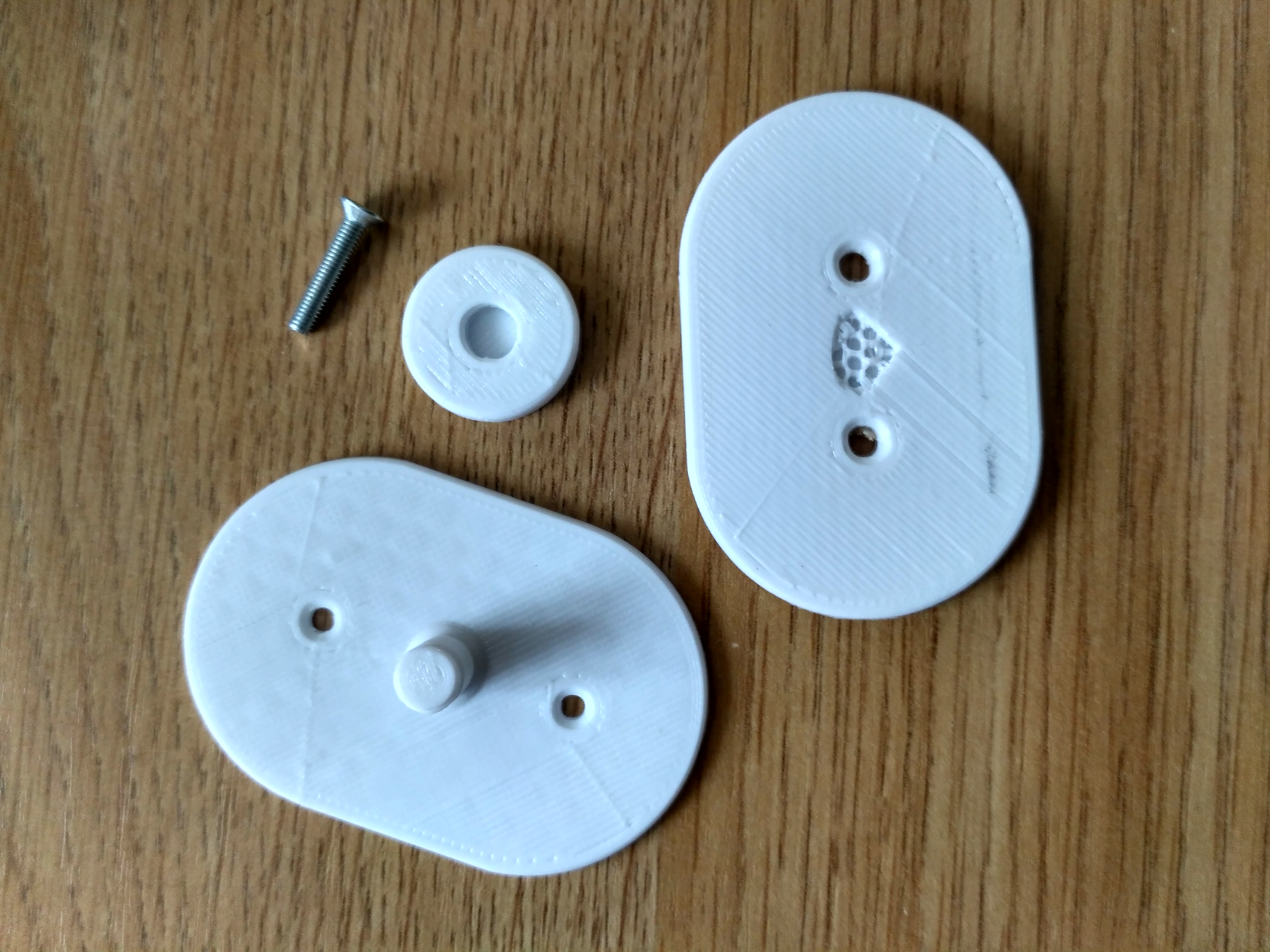 1) Прочность крепления выступающих частей, подвергающихся нагрузке. Назовем это так. По факту это детская закрывашка на дверь шкафа. Заводской вариант не выдержал карантинных нагрузок =) и сломался.