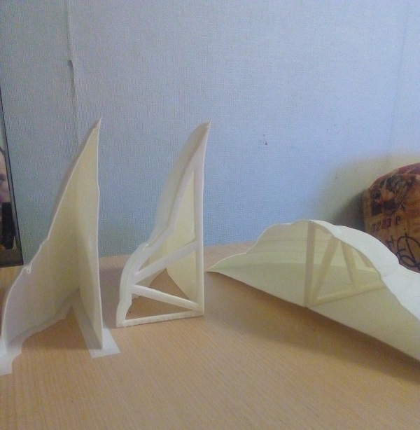 Когда формовочная насадка для пылесоса была готова я приступил к делу. Нагревая abs до температуры размягчения надо было быстро приставлять к нему формовочную насадку пока пластик не затвердеет. На деле всё оказалось немного сложнее чем я ожидал. Пластик никак не хотел становиться прямым. Вероятно из-за большого диаметра основания насадки у меня не получилось должным образом выровнять плоскость, так как насадка не прилегала полностью и оттягивала плоскость от рёбер жесткости. Если бы нижняя часть модели была прямой формы или формовочная насадка была бы меньшего диаметра, то тогда бы всё вышло как надо.
