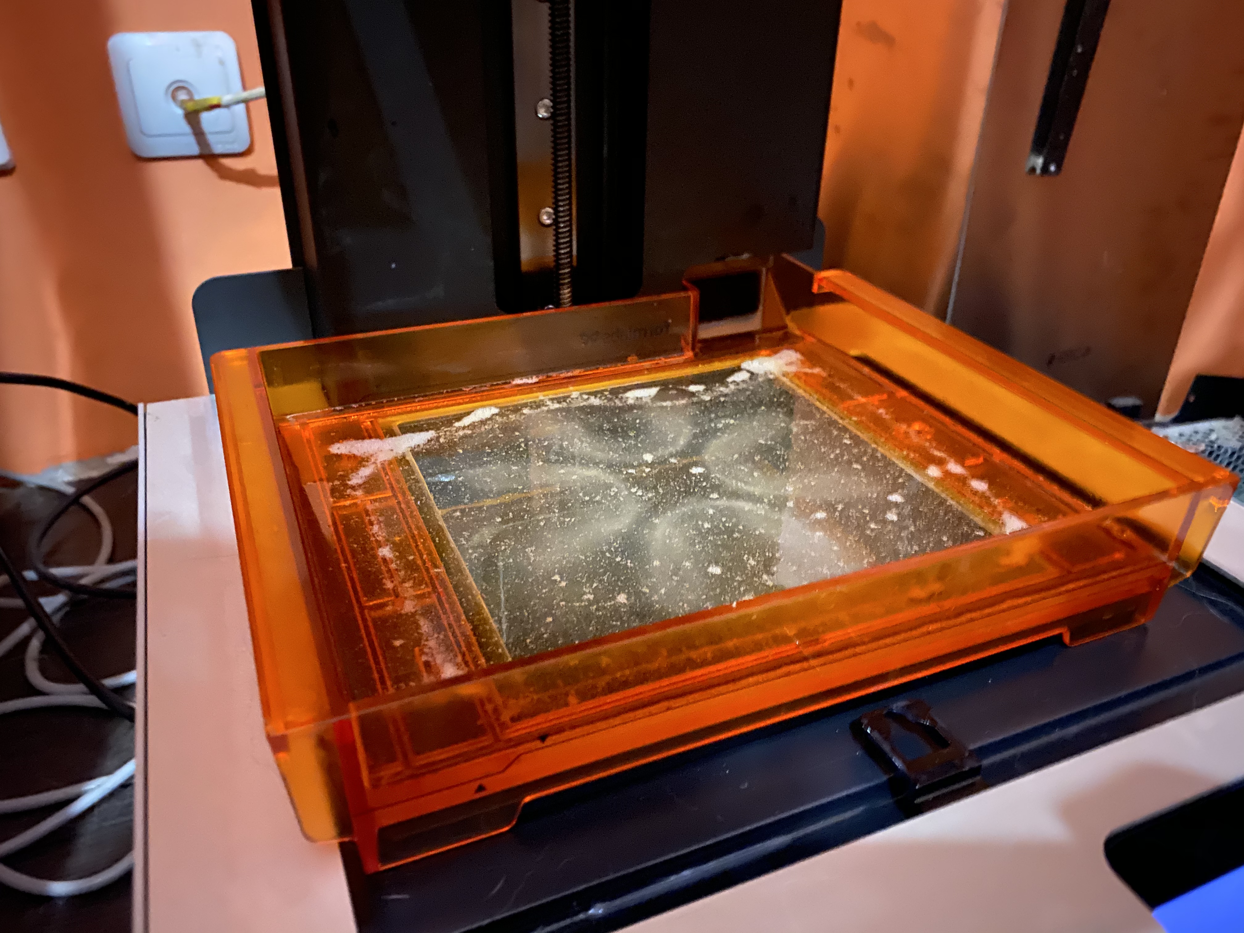 Далее вливаю полимер, включаю открытый режим и запускаю печать.