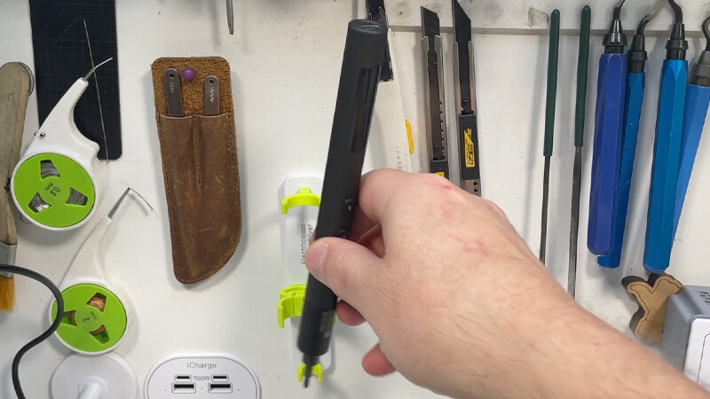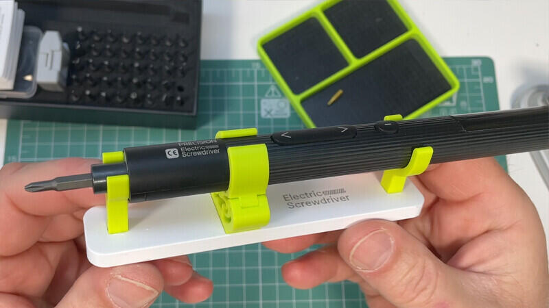 Посмотрите видео — там всё показано. Я очень доволен, что наконец-то организовал для этой отвёртки нормальное место. Теперь подумываю сделать что-то подобное и для других инструментов — может, для бормашинки, или ещё чего-нибудь.