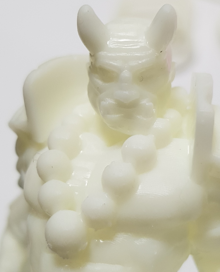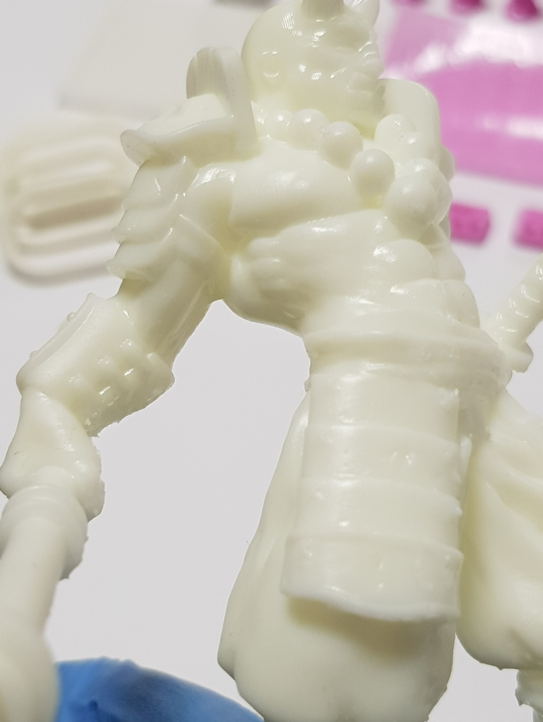 Детализацию оценивайте сами. По-моему, получился неплохое сочетание детализации и гладкого глянца.Под микроскопом глянец не так сильно мешает рассмотреть детали.Решил, что нужно напечатать что-нибудь побольше. Модель взята отсюда. Опять же, модель после финальной дозасветки не изменила цвет и осталась белой.Сложно фотографировать белый на белом фоне)
