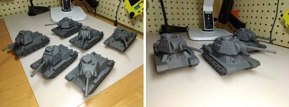 А напечатан этот синий маячок надежды нашим светящимся PLA.Пока 23 февраля не так далеко в прошлом, давайте посмотрим, какие интересные проекты воплотили наши подписчики!Легендарные советские танки Т-34 друг за другом выходят из-под экструдера 3D-принтера Андрея Ананьева.