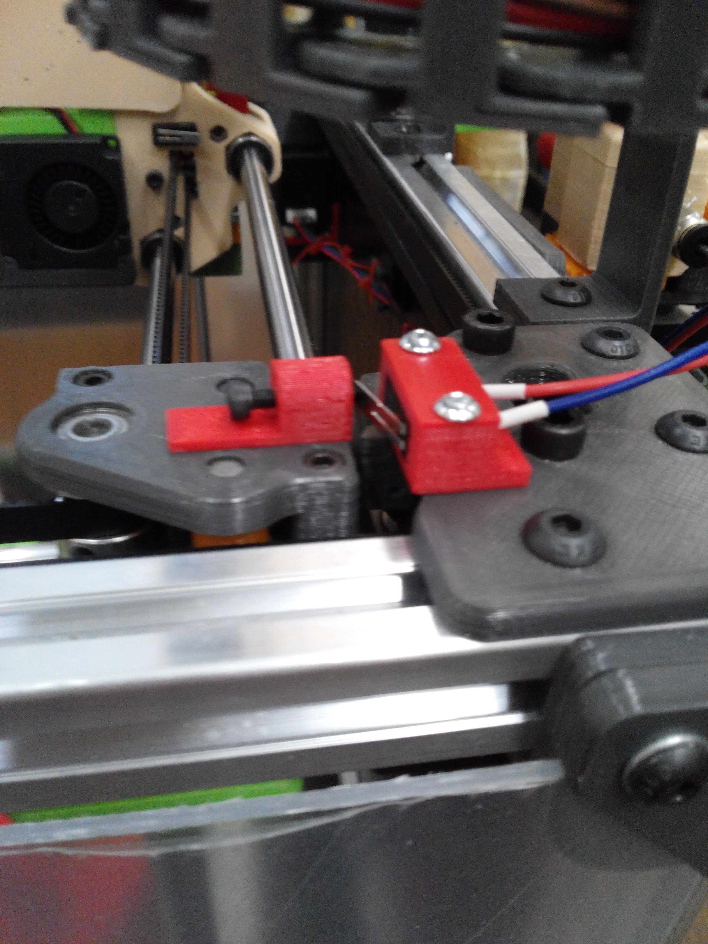 Механику собрал, ремни натянул, и западло как всегда вылезло, забыл закрепить концевик по Y. Подумавши за 100_граммами апперитивчику, решил, что может и к лучшему. А если навернется, что весь принтер разбирать? Не, как то не по нашему, все должно быть чуточку проще. Вот и заделал такой вариант концевика. Приклеить не сложно, но если что, то и поменять - раз плюнуть. Конечно Немцы все деликатно заделали, но сложности добавили. :-))