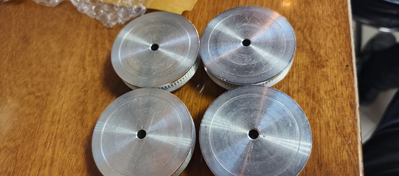 Отдельным лотом я взял сразу комплект шкивов за 3.5к, из которых 3к отгрыз у продавца обратно за косячные шкивы, в нескольких местах были прям сильные вмятины, пару зубцов пришлось выпрямлять, и несколько подшипников докупать. Вот осталось пару фото: