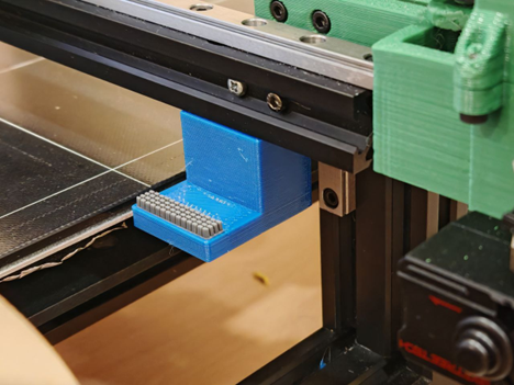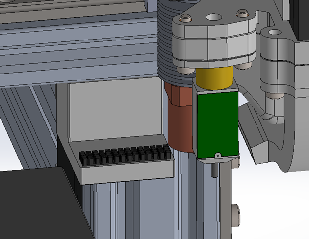 Также рядом с каждой позицией парковки инструмента установлены силиконовые щетки сопла. Длина рельса позволила установить их так, чтобы они были направлены вдоль оси, при этом, до стола остается около 5 мм. На этом с конструкторской частью всё, теперь переходим к сборке.