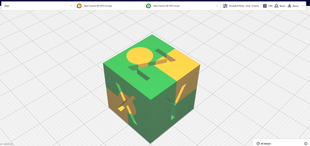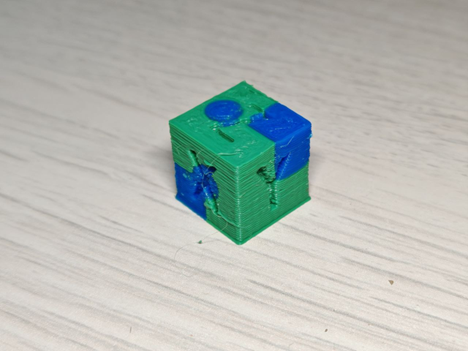 Да, он далеко не идеальный, но я на нём проверил, что система смены голов работает. На текущий момент время смены инструмента 6 секунд, что в 15 раз быстрее AMS систем. Количество отходов тоже гораздо меньше, чем у них. Довести этот кубик до идеала это уже дальше дело хорошего скрипта на смену инструмента, главное, что система работает. Для сравнения вот кубик еще без настроенных ускорений: